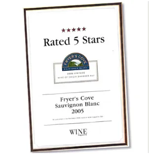 South Africa’s prestigious Wine Magazine gives Fryer’s Cove Vineyar’s Sauvignon Blanc a 5-star rating, making it only the second Sauvignon Blanc to do so in 12 years.